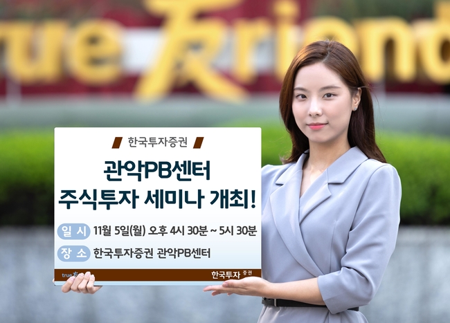 한국투자증권은 오는 5일 오후 4시 30분부터 서울 관악구 신림동에 위치한 한국투자증권 관악PB센터에서 개인 투자자 대상 주식투자 세미나를 개최한다.