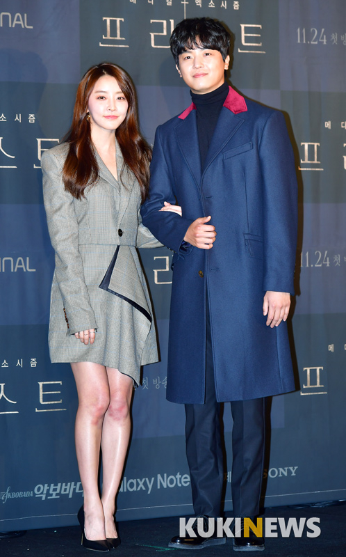 배우 정유미와 연우진이 12일 오후 서울 영등포구 여의도동 콘래드서울호텔에서 열린 OCN 토일 오리지널 '프리스트' 제작발표회에 참석해 포토타임을 갖고 있다.