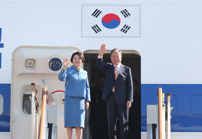 문재인 대통령과 김정숙 여사가 13일 오전 경기도 성남 서울공항을 통해 아세안(ASEAN·동남아시아국가연합) 관련 정상회의가 열리는 싱가포르로 출국했다