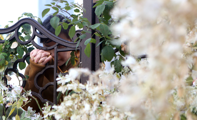 2019학년도 대학수학능력시험일인 15일 오전 경남 창원시 의창구 창원중앙고등학교에서 한 학부모가 손을 모아 기도하고 있다.