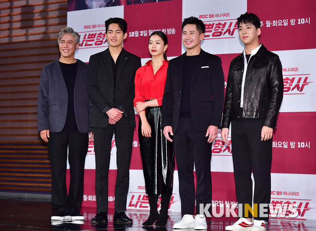 배우 박호산과 김건우, 이설, 신하균, 차선우(사진 왼쪽부터)가 29일 오후 서울 성암로 상암 MBC 사옥에서 열린 MBC 새 월화드라마 ‘나쁜형사’ 제작발표회에 참석해 포즈를 취하고 있다.