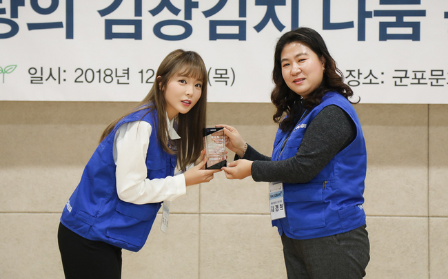 6일 오전 경기 군포시 당정동 군포문화원에서 열린 ‘복권위원회 제11기 행복공감봉사단 사랑의 김장김치 나눔 봉사 및 해단식’에서 복권홍보대사 가수 홍진영이 참석, 김장을 하고 있다.
