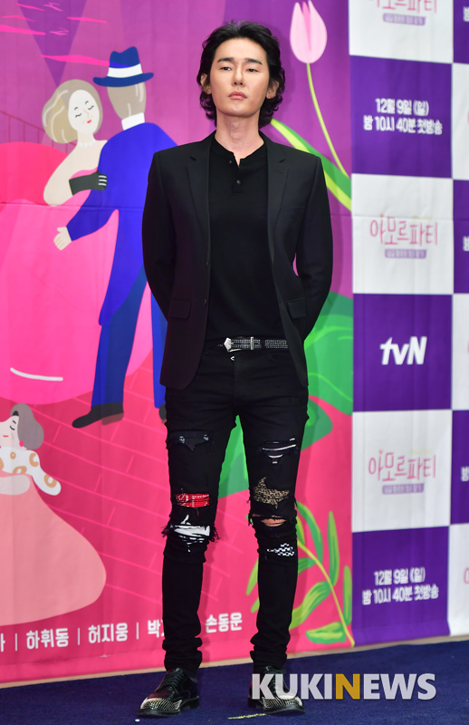 작가 허지웅이 7일 오전 서울 월드컵북로 스탠포드호텔에서 열린 tvN 새 예능 ‘아모르파티’ 제작발표회에서 포즈를 취하고 있다.
