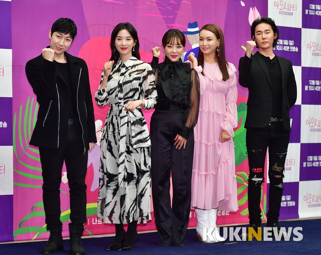 댄서 하휘동과 배우 이청아, 가수 나르샤, 안무가 배윤정, 작가 허지웅이 7일 오전 서울 월드컵북로 스탠포드호텔에서 열린 tvN 새 예능 ‘아모르파티’ 제작발표회에서 포즈를 취하고 있다.