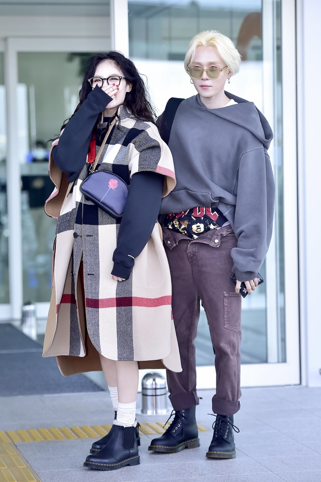 가수 현아, 이던 커플이 8일 화보 촬영차 인천국제공항을 통해 프랑스로 출국하고 있다.