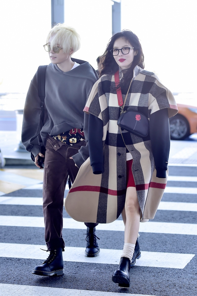 가수 현아, 이던 커플이 8일 화보 촬영차 인천국제공항을 통해 프랑스로 출국하고 있다.