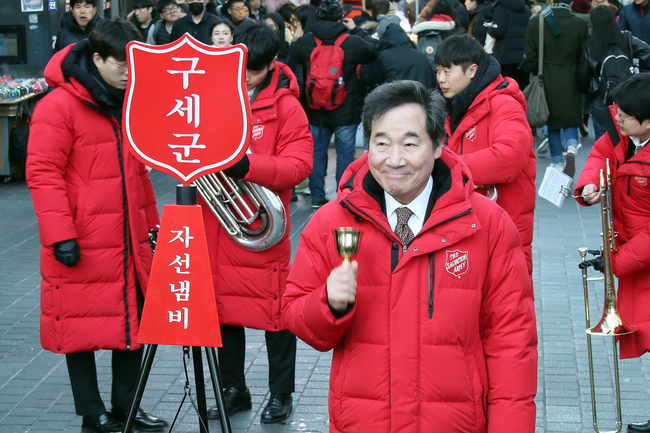 이낙연 국무총리가 24일 오후 서울 명동을 방문해 구세군 자선냄비 종을 흔들며 성금모금 자원봉사를 하고 있다.
