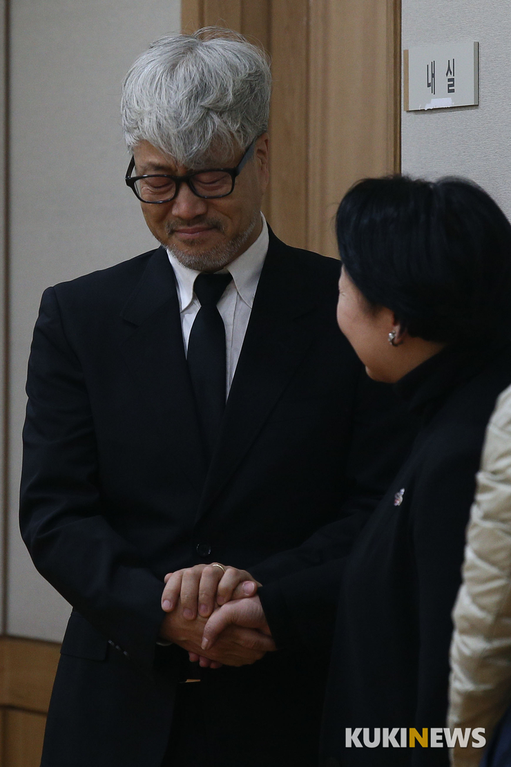 암 투병 끝에 유명을 달리한 밴드 봄여름가울겨울의 드러머 전태관의 빈소가 28일 서울 송파구 풍납동 아산병원에 마련됐다. 멤버 김종진이 빈소를 찾아 조문하고 있다.