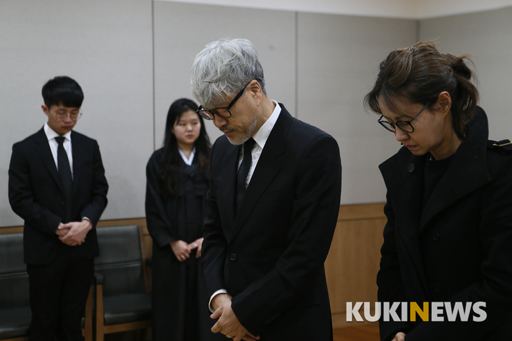 암 투병 끝에 유명을 달리한 밴드 봄여름가울겨울의 드러머 전태관의 빈소가 28일 서울 송파구 풍납동 아산병원에 마련됐다. 멤버 김종진과 이승신이 빈소를 찾아 조문하고 있다.