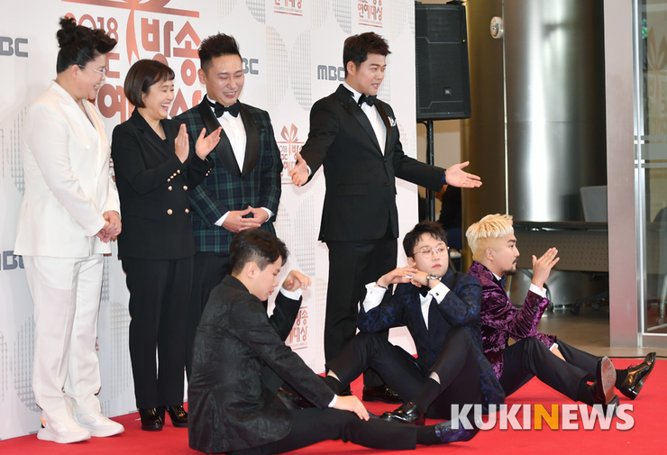 전지적 참견 시점 출연진이 29일 오후 서울 상암동 MBC 신사옥에서 열린 '2018 MBC 방송연예대상'에 참석해 포즈를 취하고 있다.
