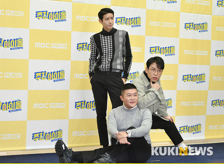 조세호와 황광희, 남창희가 2일 오전 서울 월드컵북로 스탠포드호텔에서 열린 MBC에브리원 ‘주간 아이돌’ 제작발표회에서 포즈를 취하고 있다.