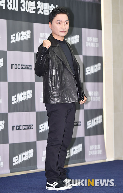배우 조재윤이 14일 서울 상암동 스탠포드호텔에서 열린 MBC에브리원 ‘도시경찰’ 제작발표회에 참석해 포즈를 취하고 있다.