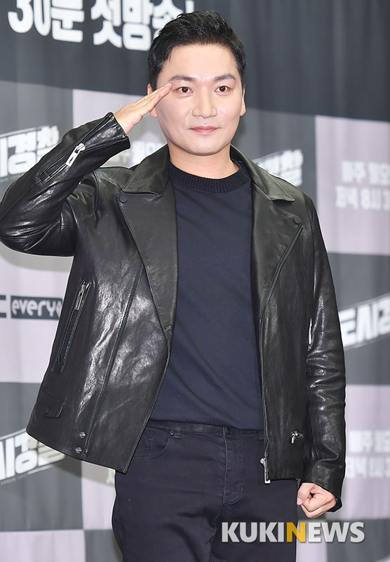 배우 조재윤이 14일 서울 상암동 스탠포드호텔에서 열린 MBC에브리원 ‘도시경찰’ 제작발표회에 참석해 포즈를 취하고 있다.