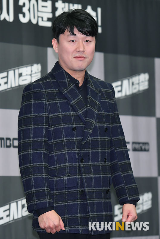 배우 김민재가 14일 서울 상암동 스탠포드호텔에서 열린 MBC에브리원 ‘도시경찰’ 제작발표회에 참석해 포즈를 취하고 있다.