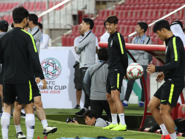 축구대표팀 이청용이 21일(현지시각) 2019 아시아축구연맹(AFC) 아시안컵 바레인과의 16강전을 하루 앞두고 아랍에미리트 두바이 라시드 스타디움에서 몸을 풀고 있다.