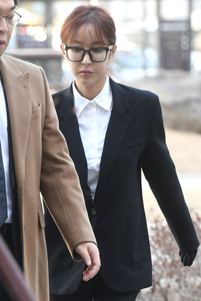 상습도박 혐의로 불구속 기소된 S.E.S. 출신 방송인 슈(본명 유수영)가 첫 공판에 출석하기 위해 24일 오전 서울 송파구 서울동부지방법원으로 들어서고 있다.