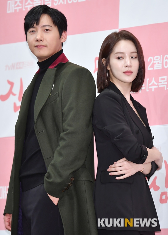 배우 이상우와 손성윤이 29일 오후 서울 언주로 임피리얼팰리스에서 열린 tvN 새 수목드라마 ‘진심이 닿다’ 제작발표회에 참석해 포즈를 취하고 있다.