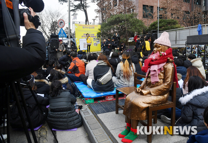 30일 오후 서울 종로구 옛 일본대사관 앞에서 일본군 성노예제 문제해결을 위한 제1372차 수요집회가 열렸다.