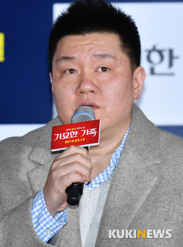 배우 이민재가 30일 오후 서울 메가박스 동대문에서 열린 영화 '기묘한 가족'(감독 이민재) 언론시사회에서 취재진의 질문에 답하고 있다.