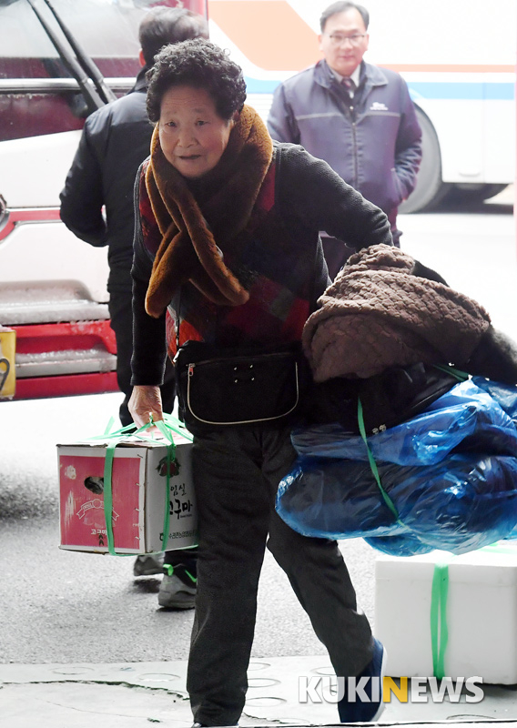설 연휴를 앞둔 31일 오후 서울 서초구 반포동 센트럴시티터미널에서 역귀성 하는 어르신이 발걸음을 옮기고 있다.