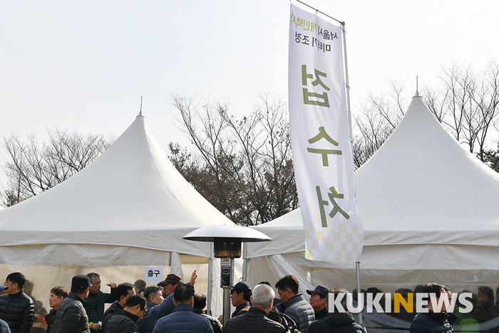 택시 미터기 교체 작업이 시작된 18일 오전 서울 마포구 난지천 공원 주차장에서 택시기사들이 순서를 기다리고 있다.