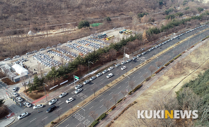 택시 미터기 교체 작업이 시작된 18일 오전 서울 마포구 난지천 공원 주차장에서 택시들이 순서를 기다리고 있다.