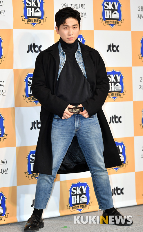 개그맨 유세윤이 20일 오후 서울 마포구 서울가든호텔에서 열린 JTBC '위대한 운동장- SKY머슬' 제작발표회에 참석해 포즈를 취하고 있다.