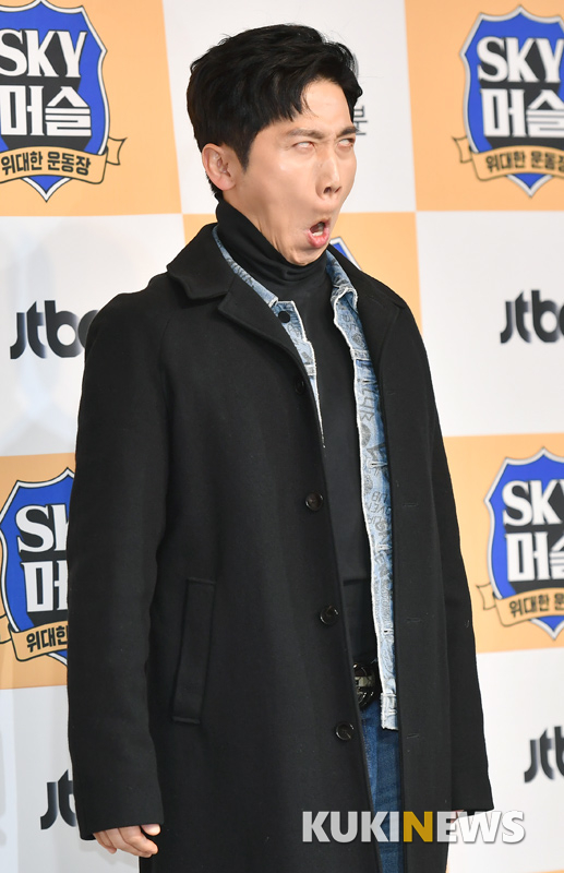 개그맨 유세윤이 20일 오후 서울 마포구 서울가든호텔에서 열린 JTBC '위대한 운동장- SKY 머슬' 제작발표회에 참석해 포즈를 취하고 있다.