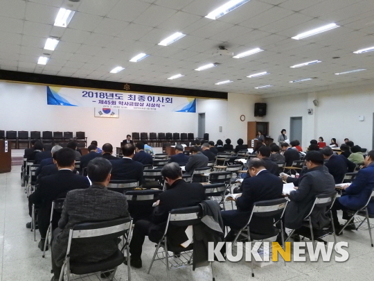 26일 오후 서울 동아홀에서 열린 대한약사회 ‘2018년 최종이사회 및 제45회 약사금탑상 시상식’에서 조 회장은 이 같이 밝혔다. 이사회에 상정된 주요 안건은 ▲제주지부 분회 통합 승인 ▲회계간 차입 추진 ▲정기대의원총회 상정 등이었다. 제45회 약사금탑상 수상의 영광은 이진희 약사, 문애리 약사, 최형옥 약사, 김영근 약사, 김병진 약사 등에게 돌아갔다.