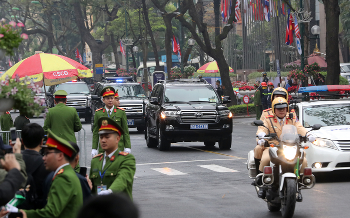 제2차 북미정상회담이 시작된 27일 베트남 하노이 메트로폴호텔에서 김정은 위원장의 경호원들이 탄 차량이 나가고 있다.