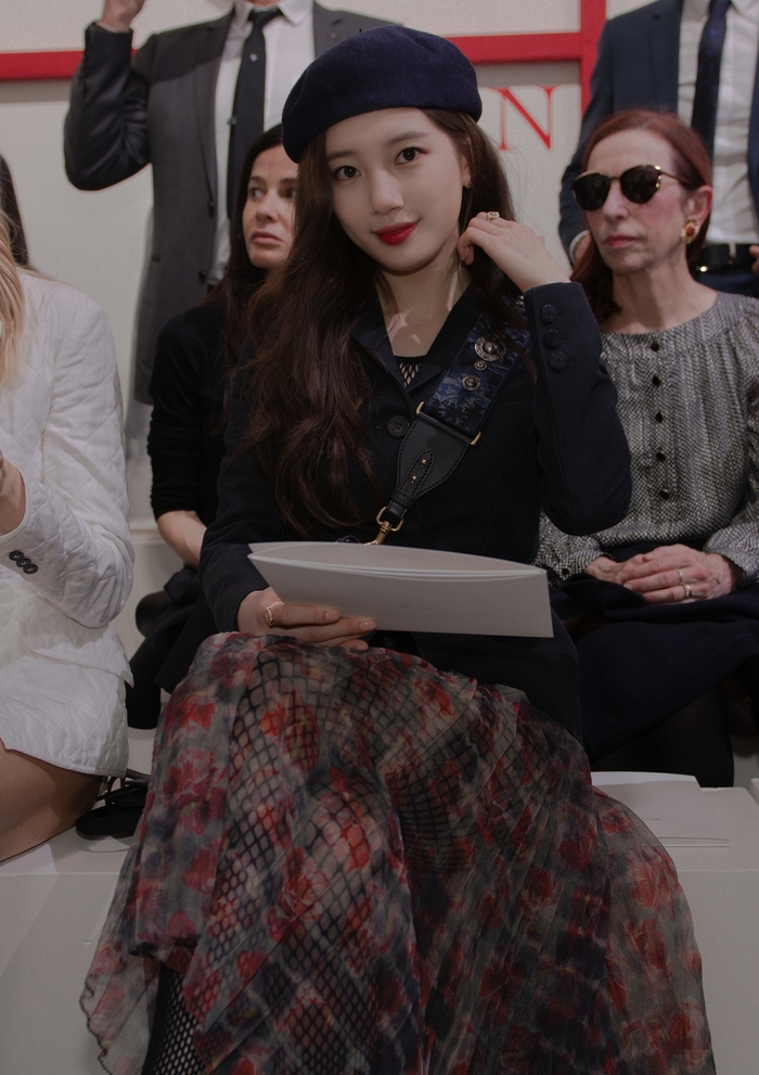 배우 수지가 26일(현지시각) 프랑스 파리 로댕 뮤지엄에서 열린 디올 2019 F/W 콜렉션에 참석해 포즈를 취하고 있다.