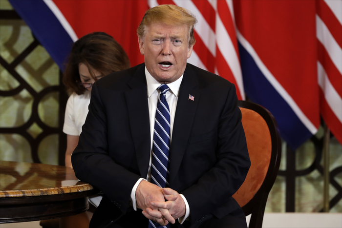 김정은 북한 국무위원장과 도널드 트럼프 미국 대통령 28일 오전(현지시간) 베트남 하노이 메트로폴 호텔에서 단독정상회담을 하고 있다.