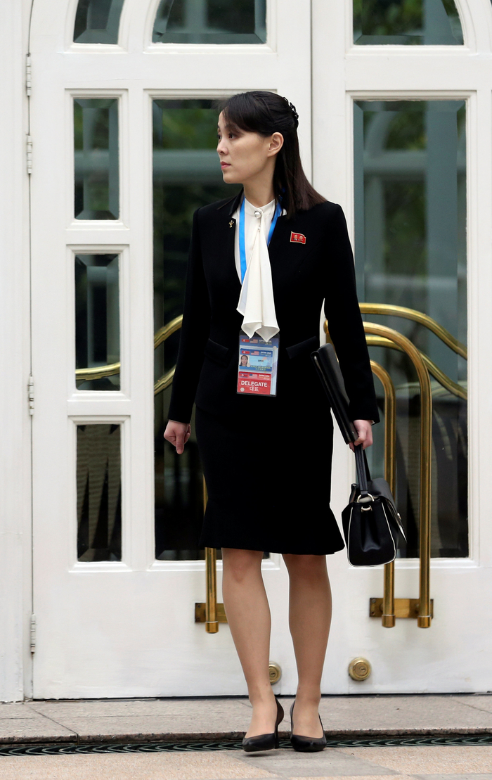 김여정 북한 노동당 제1부부장이 28일(현지시간) 베트남 하노이 메트로폴 호텔에서 도널드 트럼프 미국 대통령과 김정은 북한 국무위원장의 단독회담 중 밖에서 기다리고 있다.