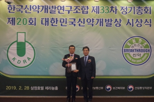 한편 같은 날 진행된 '제20회 대한민국신약개발상 연구책임자 표창식'에서 김봉태 CJ헬스케어 임상의학센터 부장이 케이캡정 개발 성공에 기여한 공로를 인정받아 보건복지부장관 표창을 수상했다.