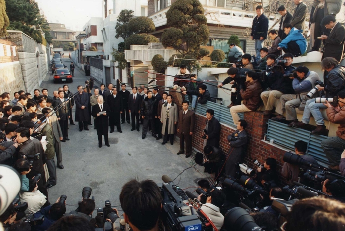 전두환 씨는 내란수괴 등 혐의로 구속되기 직전인 1995년 12월 2일 자택 앞에서 검찰 소환 방침을 정면 반박하는 대국민 성명을 발표했었다.