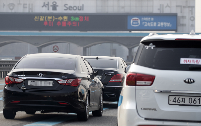 광주법원으로 출발한 전두환 씨는 탑승 차량이 서울톨게이트에 들어서고 있다. 서대문경찰서 소속 2개 형사팀 10여명과 이와는 별개로 경호를 맡은 경찰 경호대도 함께 동행했다.