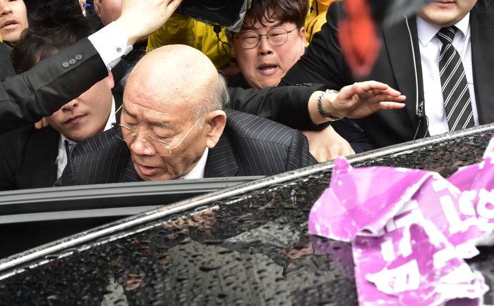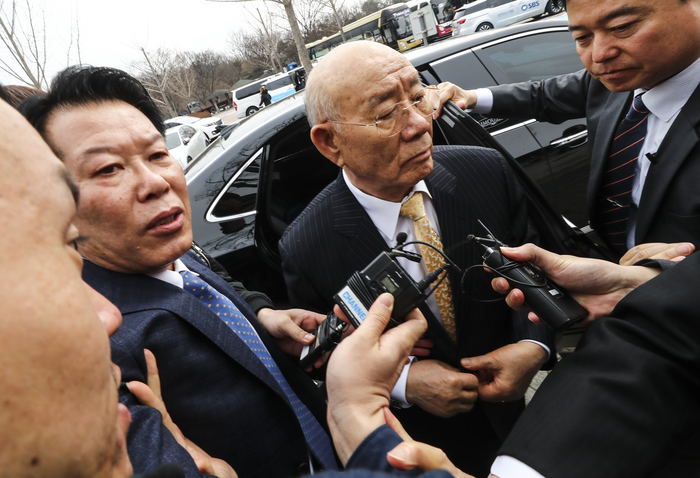 재판 마치고 황급히 차에 오르는 전두환 씨. 4월 8일에 다시 만나요