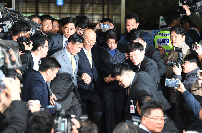 전두환 씨가 첫 공판을 76분 만에 마치고 광주법원을 나서고 있다. 전씨의 법률 대리인인 정주교 변호사는 5·18 당시 헬기 사격설, 특히 조비오 신부가 주장한 5월 21일 오후 2시쯤 광주 불로교 상공에서의 헬기 사격 여부에 대한 증명이 충분하지 않다며 허위사실로 사자(死者)의 명예를 훼손했다는 검찰의 주장은 잘못됐다며 검찰의 공소사실을 부인했다.