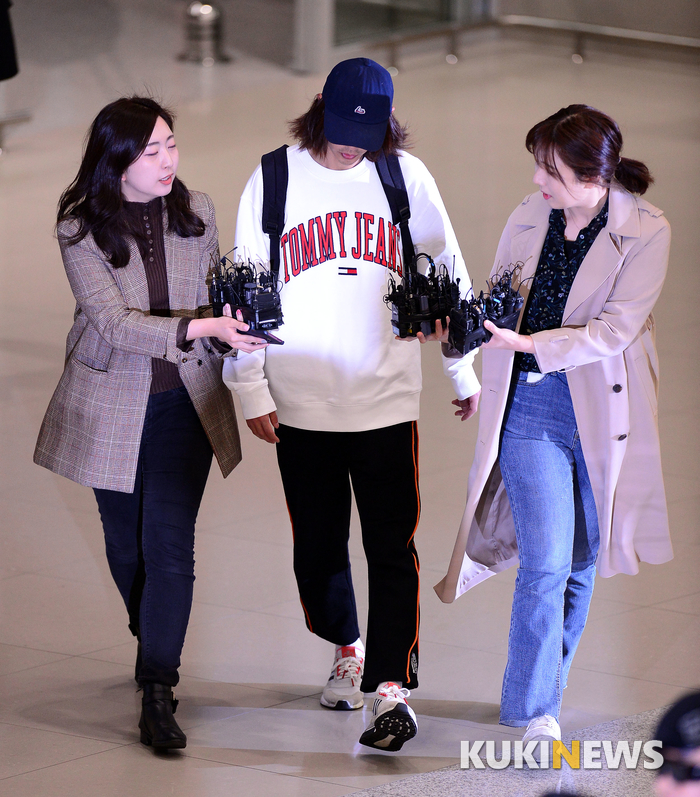성관계 영상을 불법으로 찍어 지인들에게 유포한 의혹을 받고 있는 가수 정준영이 12일 오후 인천국제공항을 통해 귀국했다.