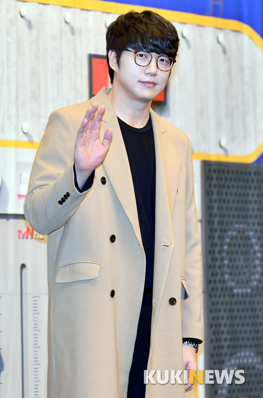 가수 성시경이 13일 오전 서울 상암동 스탠포드호텔에서 열린 tvN 예능프로그램 '쇼!오디오자키' 제작발표회에 참석해 포즈를 취하고 있다.