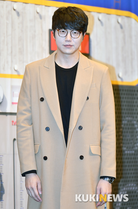 가수 성시경이 13일 오전 서울 상암동 스탠포드호텔에서 열린 tvN 예능프로그램 '쇼!오디오자키' 제작발표회에 참석해 포즈를 취하고 있다.