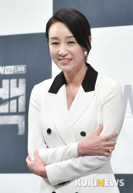 배우 남기애가 15일 오후 서울 언주로 임피리얼팰리스에서 열린 tvN 새 토일드라마 ‘자백’ 제작발표회에 참석해 포즈를 취하고 있다.