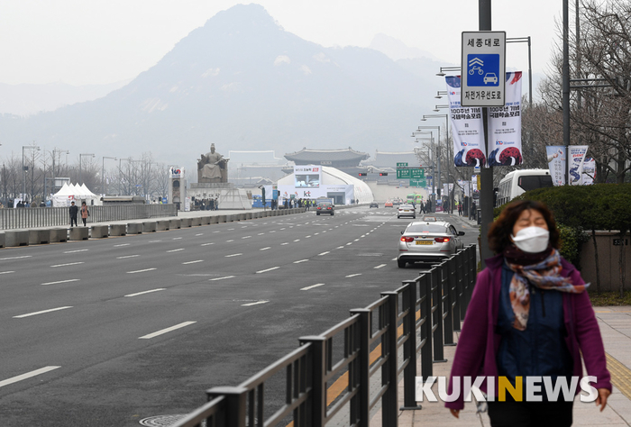 서울에 초미세먼지 주의보가 8일 만에 다시 발령된 가운데 20일 오전 도심이 뿌옇게 보이고 있다.
