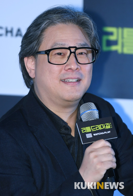 감독 박찬욱이 20일 오후 서울 CGV 용산에서 첫 드라마 연출작 '리틀 드러머 걸: 감독판' 언론시사회에 참석해 인사하고 있다.