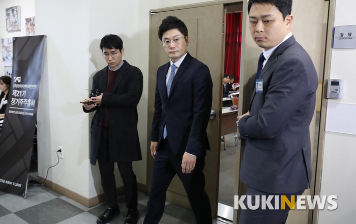 YG엔터테인먼트가 클럽 버닝썬 사건과 국세청 세무조사 등으로 몸살을 앓고 있는 가운데 22일 서울 양화로 홀트아동복지회 대강당에서 주주총회를 열었다.