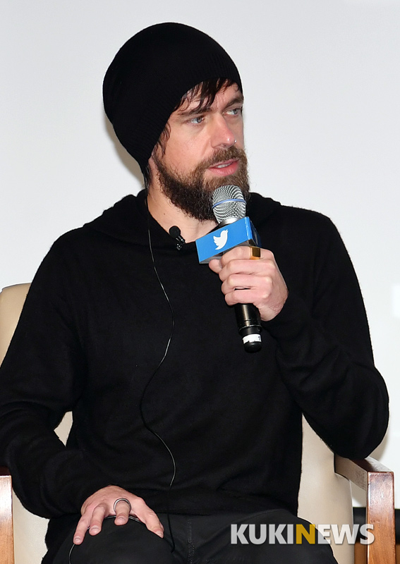 잭 도시 트위터 CEO(왼쪽)가 22일 서울 신라호텔에서 열린 '트위터 프레스 이벤트'에서 취재진의 질문에 답하고 있다.
