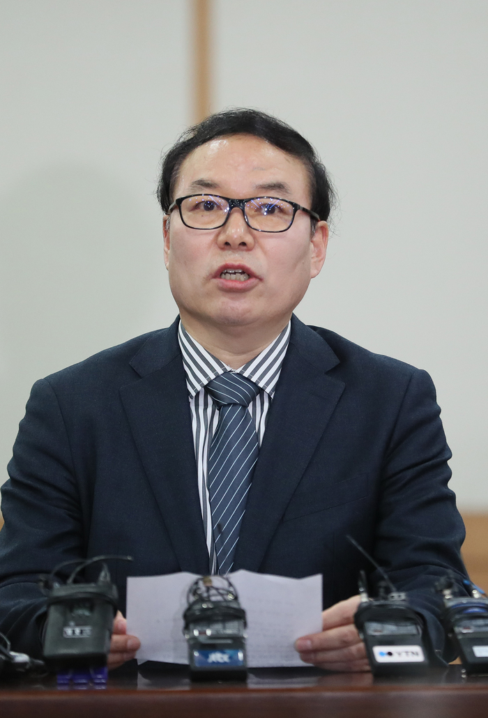 정한중 검찰 과거사위원회 위원장 대행이 25일 오후 경기도 정부과천청사 법무부에서 열린 과거사위원회 정례회의에서 김학의 전 차관 출국 관련 발언을 하고 있다. 이날 회의에서 '별장 성폭력·성접대' 의혹을 받는 김학의 전 차관에 대한 재수사 여부를 논의한다.
