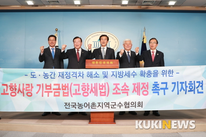 이들은 성명서를 통해 “도시와 농촌의 재정격차 해소와 세수확충을 위한 농어촌지역 활성화를 위해 국회에 계류 중인 고향사랑 기부금법이 조속히 통과돼야 한다”고 주장했다.