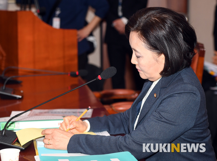 박영선 중소벤처기업부 장관 후보자가 27일 국회 산업통상자원중소벤처기업위원회 회의실에서 열린 인사청문회에서 의원 질의를 듣고 있다.