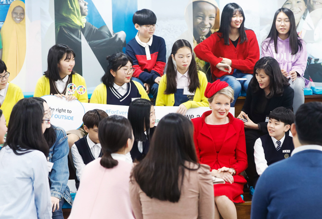 유니세프벨기에위원회 명예회장이기도 한 마틸드 왕비는 평소 유엔아동권리협약과 지속가능발전목표에 관심을 가지고 어린이 권리 실현을 위해 앞장서 왔다. 이번 벨기에 국왕 내외의 국빈 방한 일정 중에도 한국 어린이 권리 증진에 대한 관심으로 한국에서 유니세프를 대표하는 유니세프한국위원회를 찾아 한국 청소년들과 만남의 자리를 가졌다.